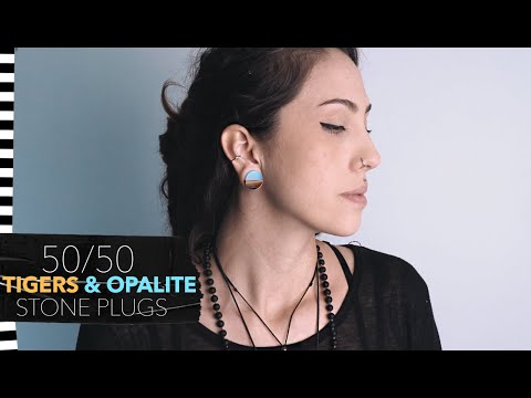 Stone plugs made from half white opalite stone and half tigers eye stone. These are handcrafted and polished with a round shape. Due to the nature of the natural stone, each plug may be slightly different in color and design, but we’ll do our best to provide you with a matching pair. Available in the following sizes: 2G, 0G, 00G, 1/2", 9/16", 5/8", 3/4", 7/8", 1 inch, 1 & 1/8", 1 & 1/4". Wearable area is about 9mm - 10mm. Full length is about 11mm-12mm with 1.5 to 2mm flares. Sold in pairs (2pcs).