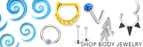 Skulls are sometimes seen as a little old school, but they’re old school for a reason. They’re kitschy, sometimes cute and always add a creepy vibe to an outfit! Try out this silver skull septum clicker that will give your hardware an even harder edge or these brass skull ear weights for something more mature!