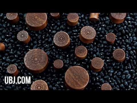 Sold in pairs (2 pieces) Saba wood Double flare Flat sides Engraved mandala flower design Pick from 00G up to 1 & 1/4" inch