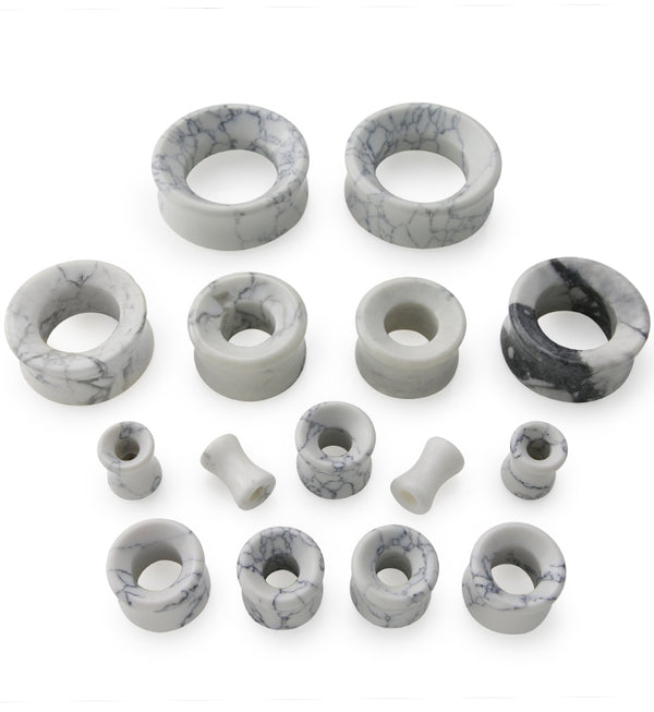 White Howlite Stone Double Flare TunnelsWhite Howlite Stone Double Flare Tunnels