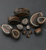 Adorn White Brass Inlay Areng Wood Teardrop Plugs