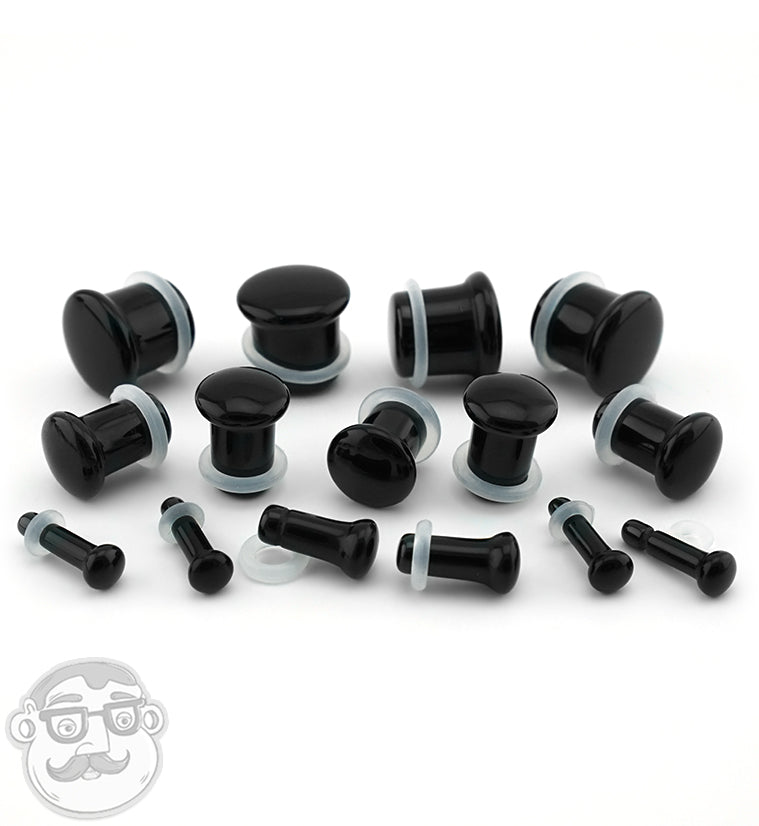 Black Obsidian Stone Plugs - Single Flare with Grooves