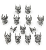 Screw back tunnels plugs with an intricately designed dragon head on the front. Crafted with 316L stainless steel and boasting a screw-on back, they are sure to stay securely in place. Available sizes: 2G (6mm), 0G (8mm), 00G (10mm), 1/2" (12mm). Full Length: 10mm (additional 6mm for dragon head front) X Wearable area: 6mm. Sold in pairs (2pcs). For healed piercings. Externally threaded.