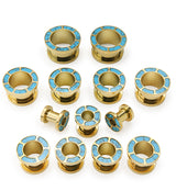 Gold PVD Howlite Turquoise Rim Stainless Steel Tunnel Plugs