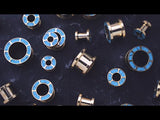 Screw back tunnels plugs with a synthetic howlite turquoise stone ring around the front. Made from 316L stainless steel. Available sizes: 2G (6mm), 0G (8mm), 00G (10mm), 7/16" (11mm), 1/2" (12mm), 9/16" (14mm), 5/8" (16mm). Full Length: 12mm X Wearable area: 8mm. Sold in pairs (2pcs).