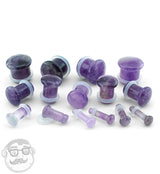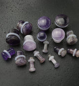 Purple Amethyst Stone Plugs - Single Flare with Grooves