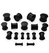 Sold in pairs (2 pieces). Pick from 8G up to 5/8". Two "O" black rings. Full length: 12mm. Wearable area: 9-10mm. Acrylic. Single flare. For healed piercings.