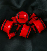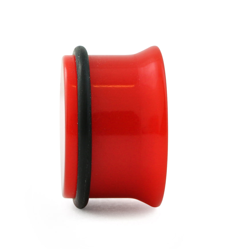 Experience bold style with our Red Single Flare Acrylic Plugs. Sold in pairs, these single flare plugs come in sizes ranging from 8G (3.2mm) to 3/4" (19mm), perfect for healed lobes. Each pair includes 2 black "O" rings for added security and are made with red acrylic material.