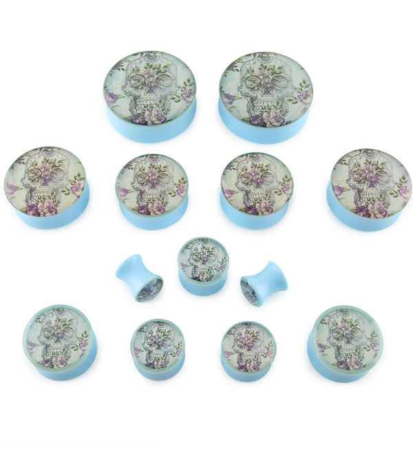 Floral Skull Light Blue PlugsFloral Skull Light Blue Plugs