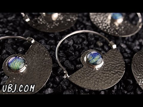Sold in pairs (2pc) Size: 14G Width: 55mm Height: 60mm 14 grams each Made from white brass Dichroic glass settings Silver is not meant for long term wear May oxidize under extreme moisture conditions