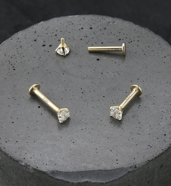 14kt Gold Tetra Clear CZ Flat Disk Threadless Labret