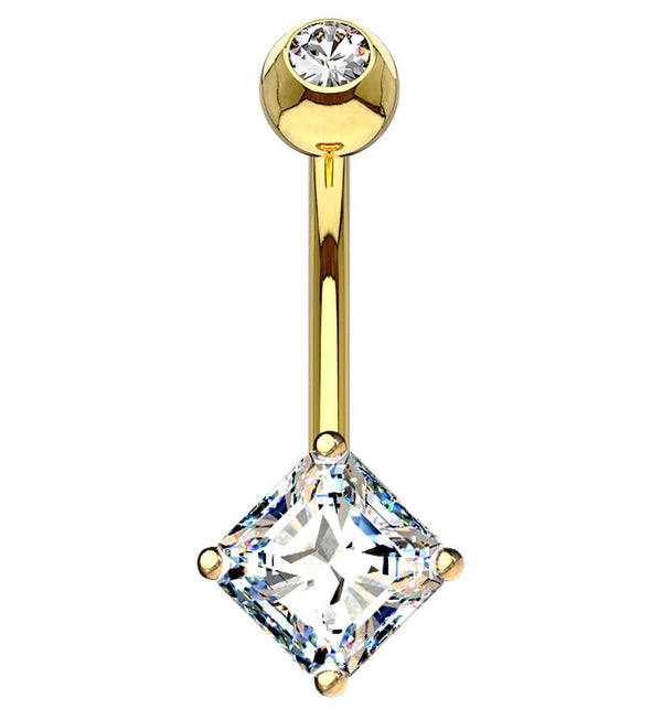 14kt Gold Tetra Clear CZ Threadless Top