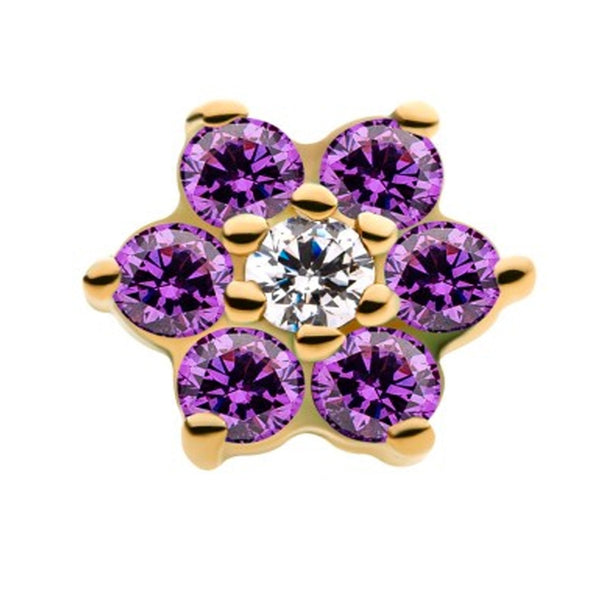 14kt Gold Tri Sepal Amethyst CZ Threadless Top