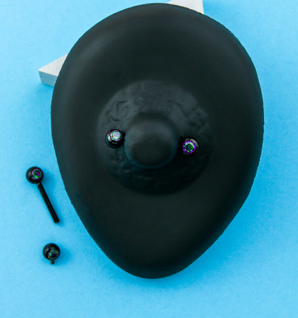 Black PVD Black Aurora CZ Ball Internally Threaded Titanium Nipple BarbellsBlack PVD Black Aurora CZ Ball Internally Threaded Titanium Nipple Barbells