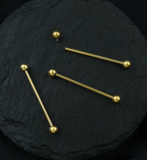 Gold PVD Ball End Titanium Threadless Straight Barbell