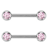 Pink CZ Ball Internally Threaded Titanium Nipple Barbells