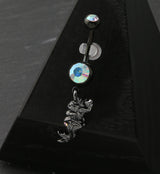 Black PVD Dangle Mermaid Skeleton Rainbow Aurora CZ Belly Button Ring