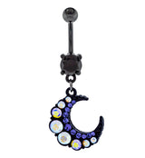 Black PVD Rainbow Aurora CZ Crescent Belly Button Ring