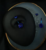 Blurple Anodized Dark Blue CZ Internally Threaded Titanium Belly Button Ring