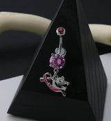 Breast Cancer Awareness Dove and Ribbon Pink CZ Belly Ring