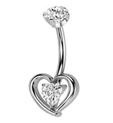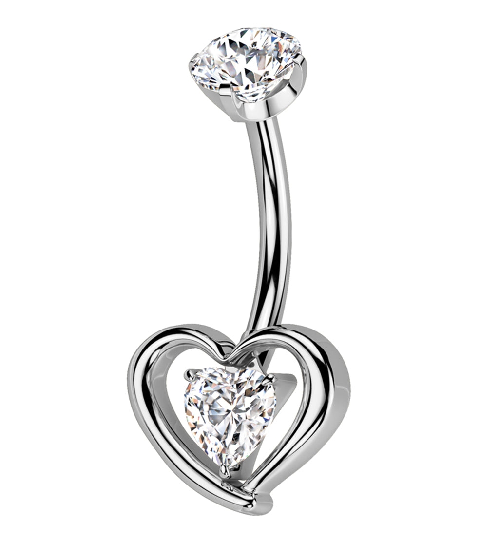 Enveloped Heart Clear CZ Titanium Internally Threaded Belly Button Ring