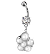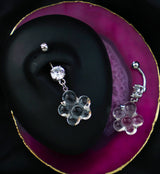Flower Pressed Fit Clear CZ Dangle Stainless Steel Belly Button Ring