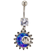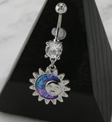 Groovy Sun and Moon CZ Dangle Belly Button Ring