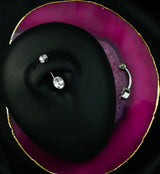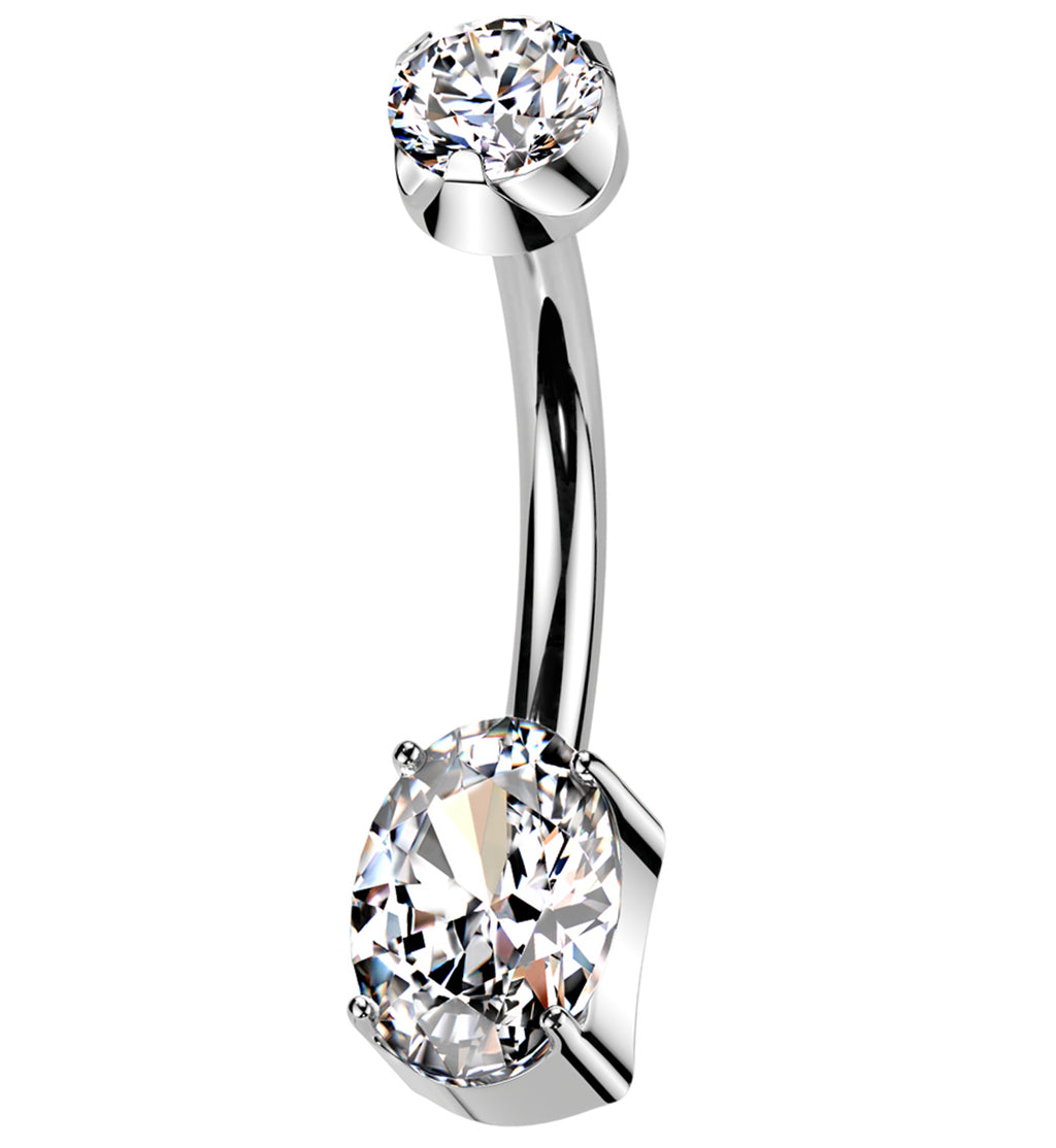 Oval Prong Clear CZ Titanium Internally Threaded Belly Button Ring