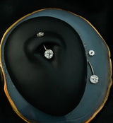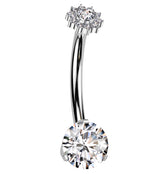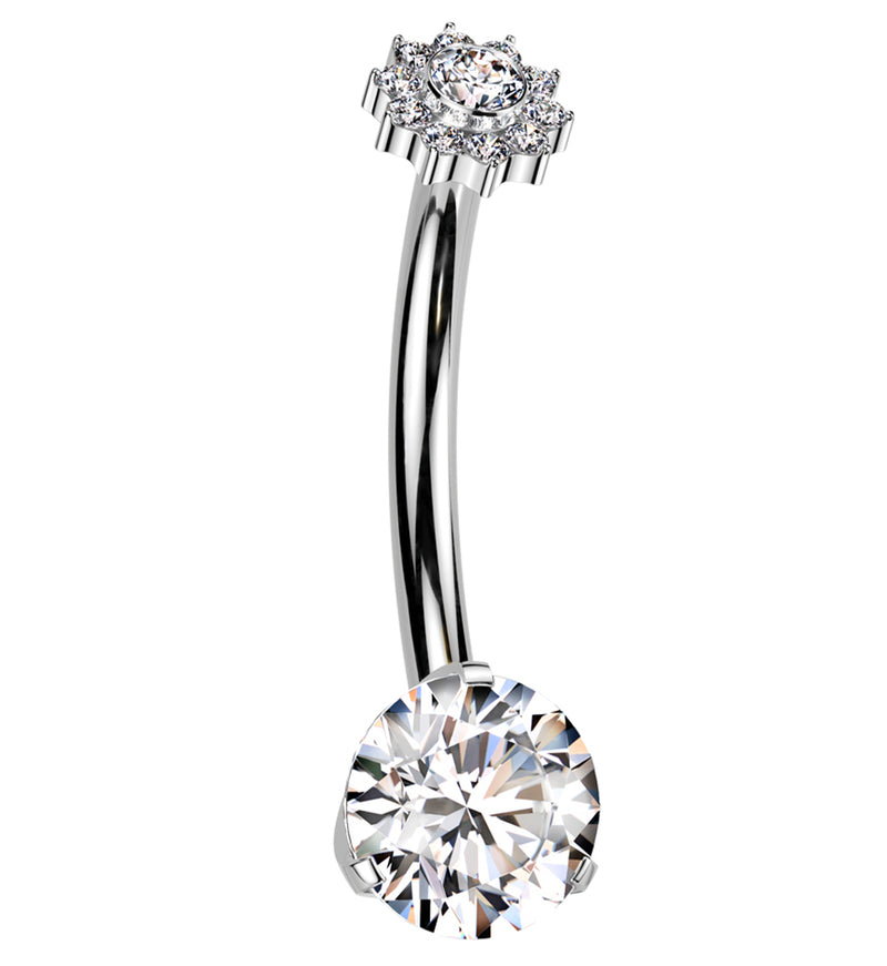 Pave Flower Clear CZ Titanium Internally Threaded Belly Button Ring