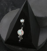 Rainbow Aurora Crystal Dangle Stainless Steel Belly Button Ring