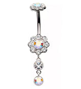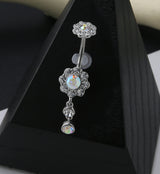 Rainbow Aurora CZ Dangle Flower Belly Button Ring
