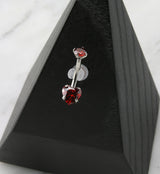 Heart cubic zirconia gem belly button ring! Striking belly button ring that would make a great addition to your collection. These are made from ASTM F-136 titanium and red cz gems. Internally threaded and 14G. Choose your length: 3/8" (10mm), 7/16" (11mm). Gem size differs with length size. Sold individually.