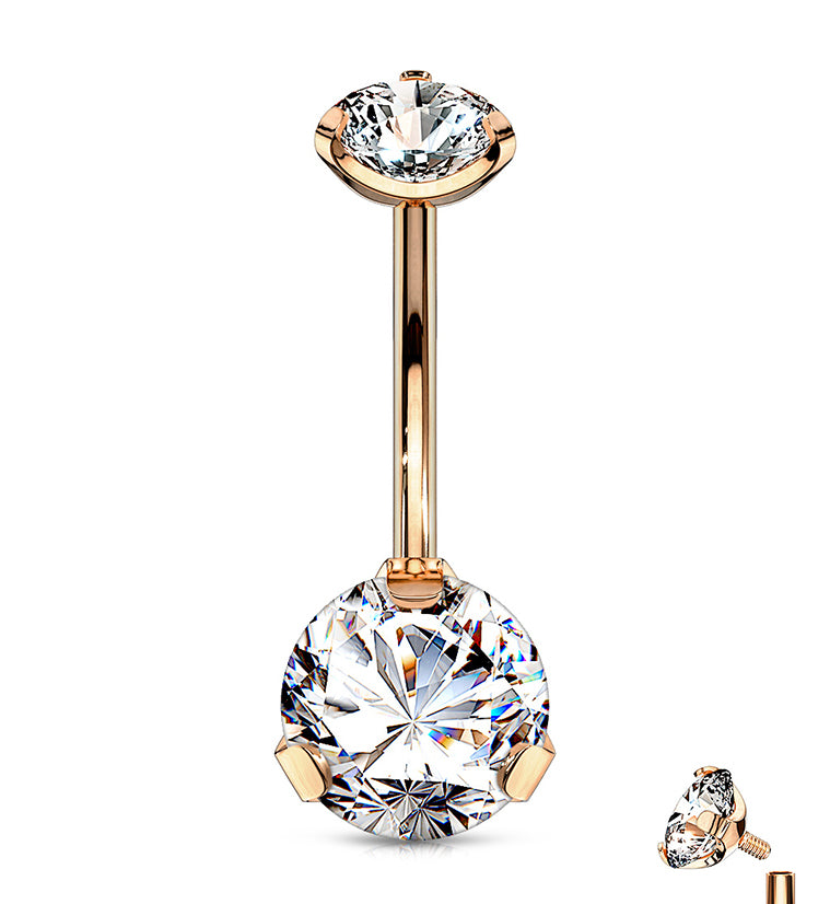 Rose Gold PVD Double CZ Internally Threaded Belly Button Ring