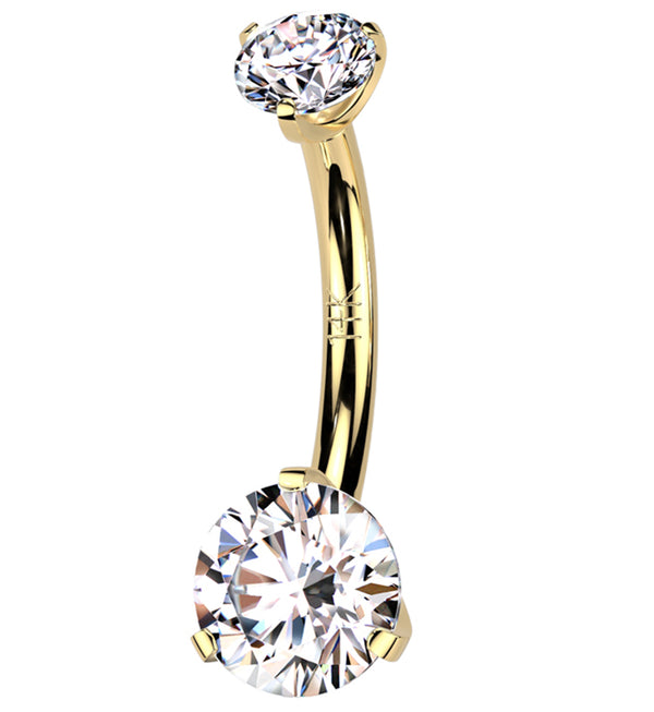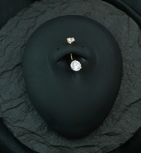 14kt Gold Double Flower Clear CZ Belly Button Ring14kt Gold Double Flower Clear CZ Belly Button Ring