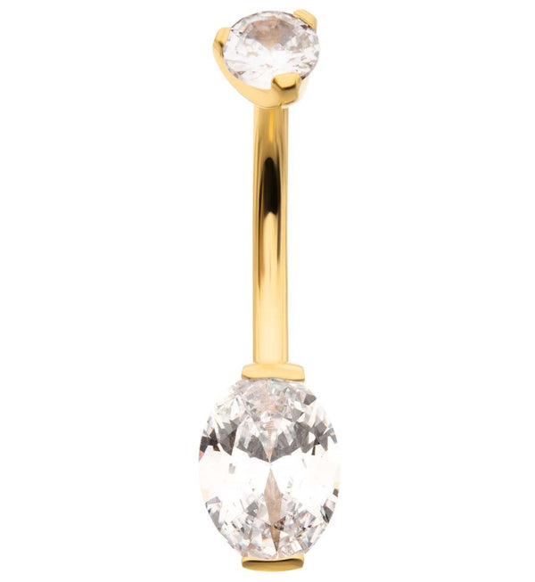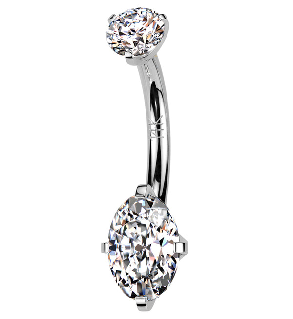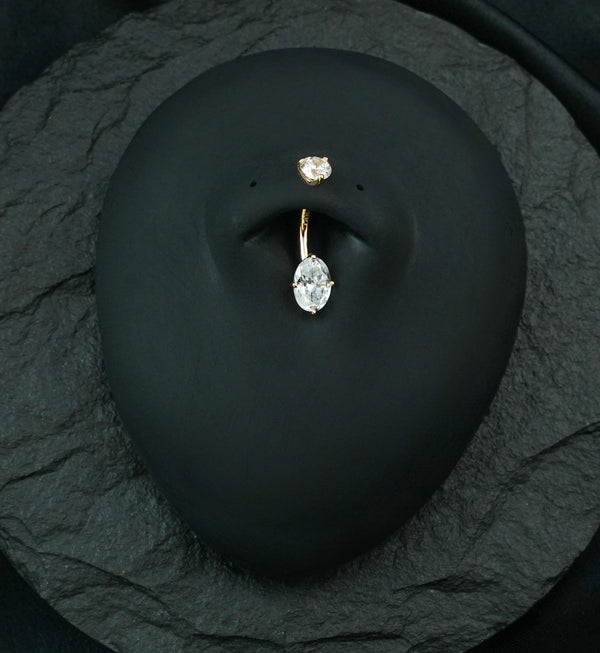 Oblong Prong Aqua CZ Titanium Belly Button RingOblong Brass Prong Aqua CZ Titanium Belly Button Ring