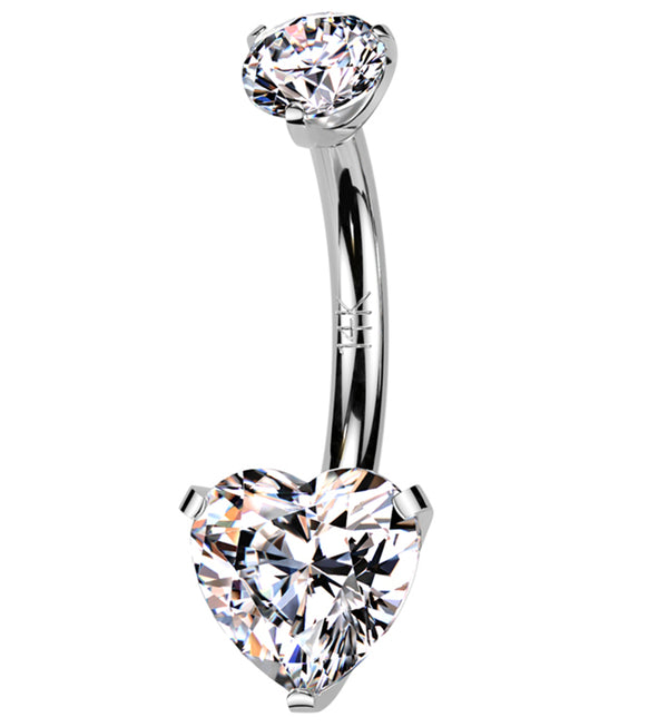 Heart CZ White Crystal Dangle Stainless Steel Belly Button RingHeart CZ White Crystal Dangle Stainless Steel Belly Button Ring