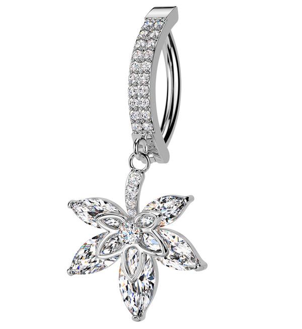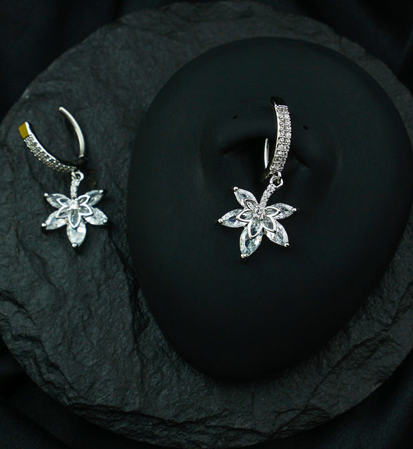 14kt White Gold Flower Clear CZ Belly Button Ring14kt White Gold Flower Clear CZ Belly Button Ring