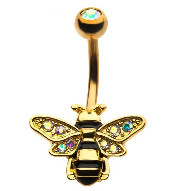 Rainbow Aurora CZ Gold PVD Belly Button Ring