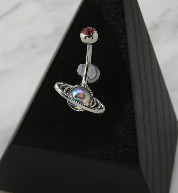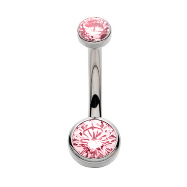Rainbow Aurora Bezel CZ Titanium Belly Button Ring