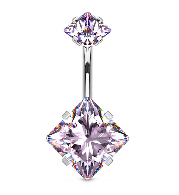 Gold PVD Rhombus Prong Clear CZ Titanium Belly Button RingGold PVD Rhombus Brass Prong Clear CZ Titanium Belly Button Ring