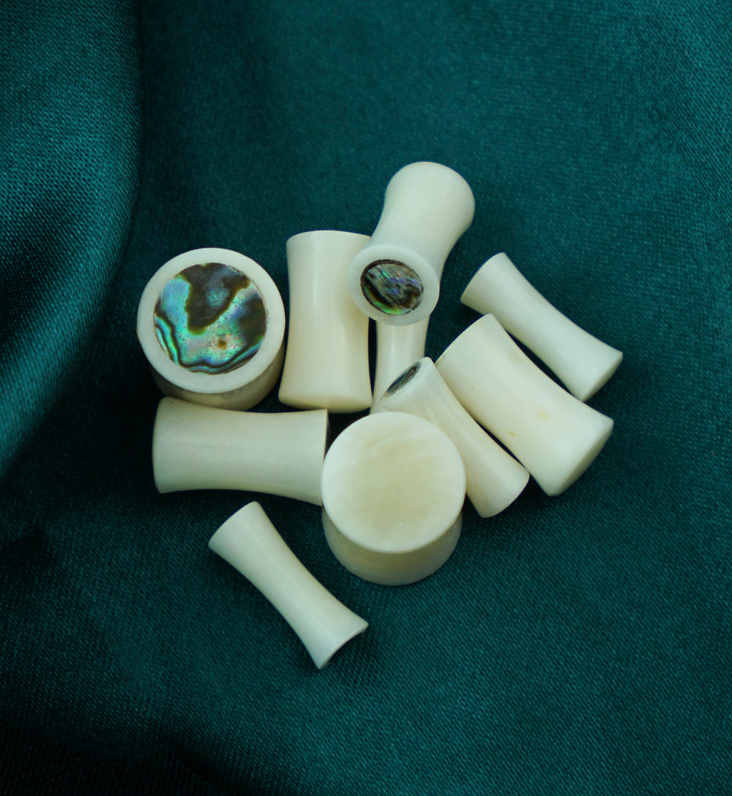 Bone Plugs with Abalone Shell Inlay