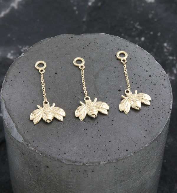 14kt Gold Honeycomb Dangle Bee Threadless Top14kt Gold Honeycomb Dangle Bee Threadless Top