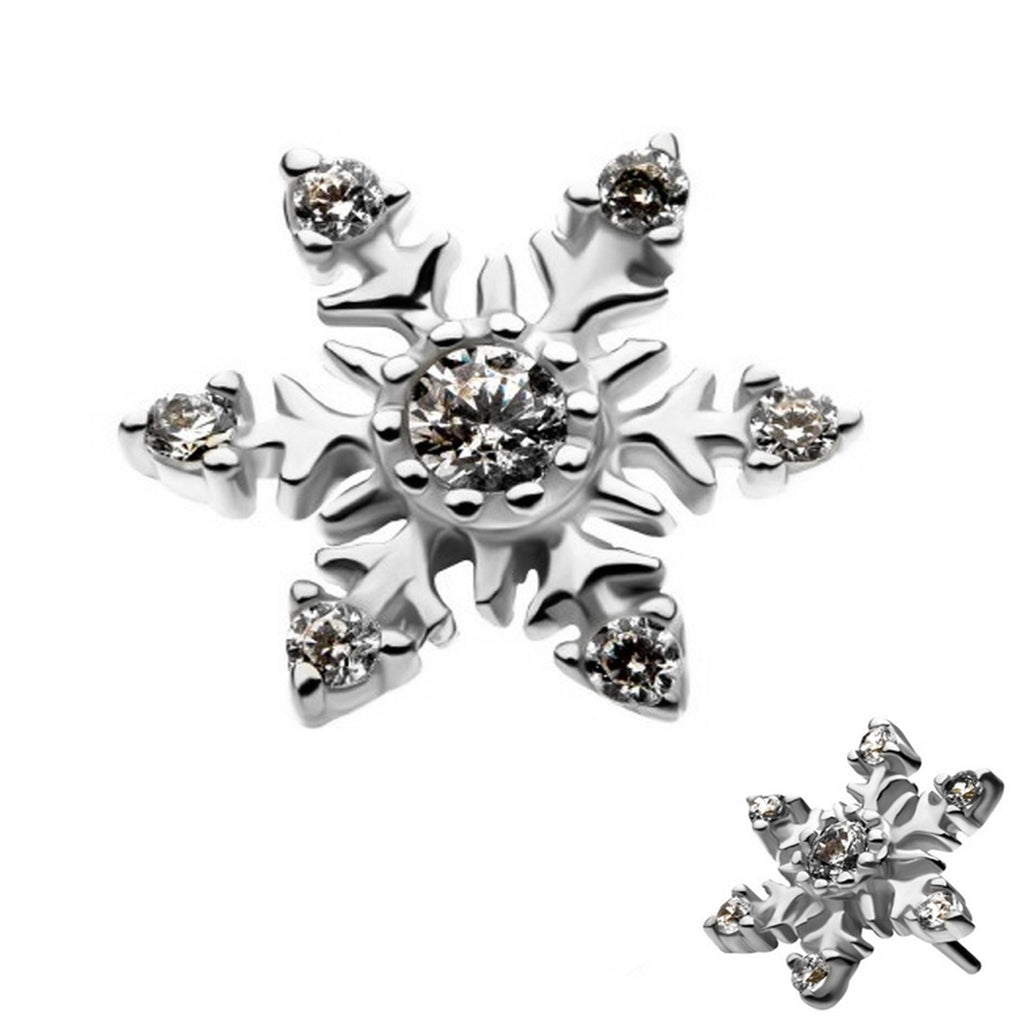 14kt White Gold Frosty Snowflake Threadless Top