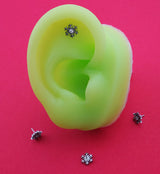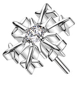 This titanium top is sold individually and made from the highest quality ASTM F-136 titanium with a centered, clear cz gem. It features a snowflake design, measuring 7mm in size and designed to fit most threadless posts with a 25G pin. Wintery style to add to your piercing!