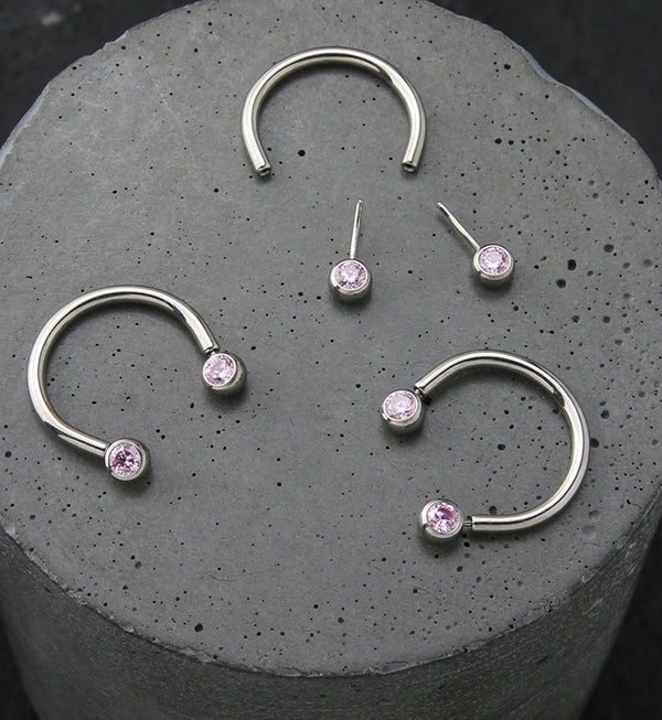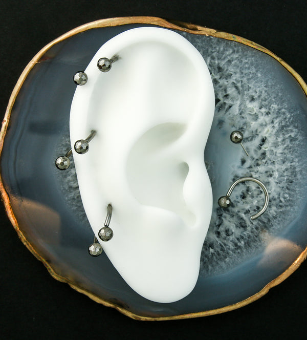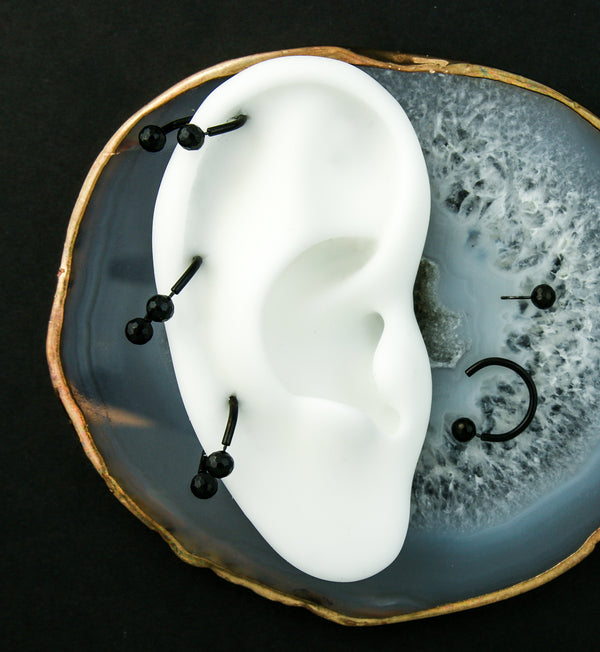 The circular barbell works with many different piercings such as the ears, tragus, septum, eyebrows, nipples, and more! The beauty of the circular barbell is how customizable it is! Not feeling the silver? We carry colors that range from black, blue, clear, gold, green, orange, pink, purple, rainbow, white and yellow. Our styles vary from different colored metals to soft and comfortable materials. You can choose the perfect size for your piercing without compromising the unique designs that accompany each barbell. Sizes start at an 18G and move all the way up to an 00g! Adorn yourself with a variety of different style circular barbells!