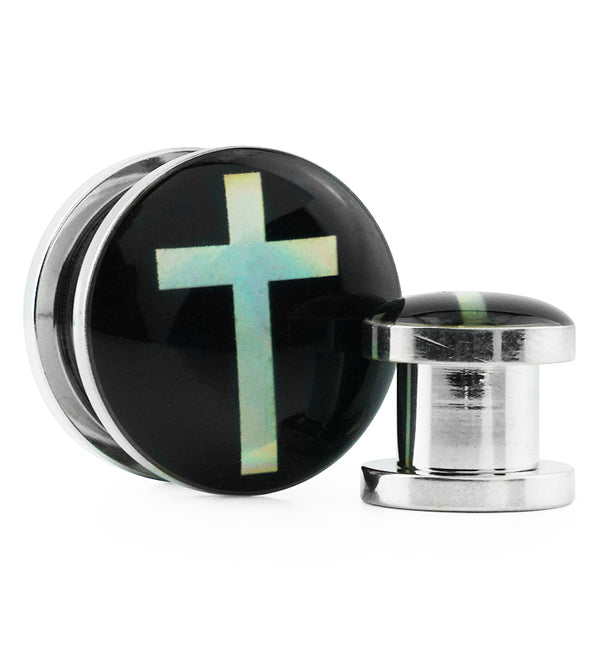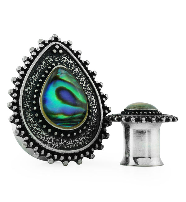 Silver Frame Opalite Flash Dome Steel Plugs