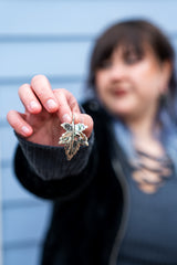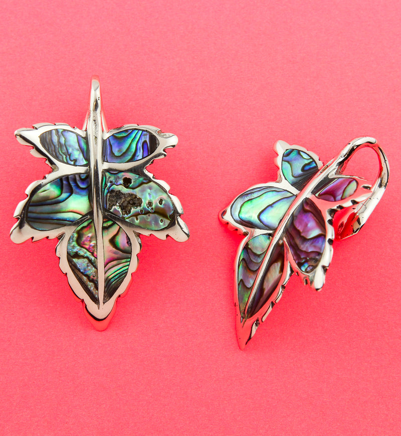 Enhance your style with these handcrafted Abalone Leaf White Brass hangers. Made from casted brass and filled with Abalone shell, each piece is different. Sold in pairs (2pc), they weigh 13 grams each and must be at least 0G (8mm) to wear. Measurements are approximately 52mm x 34mm, and brass is not meant for long term wear - it may oxidize under extreme moisture conditions. For healed piercings/lobes.