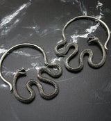 Handcrafted Sidewinder Snake White Brass Ear Weight is 32g and measures 88mm in height and 66mm in width. 8G (3mm) or larger sizes should be worn; however, brass should not be worn for extended periods of time and may oxidize in extreme moisture conditions. Intended for healed piercings. Sold in pairs (2pcs).