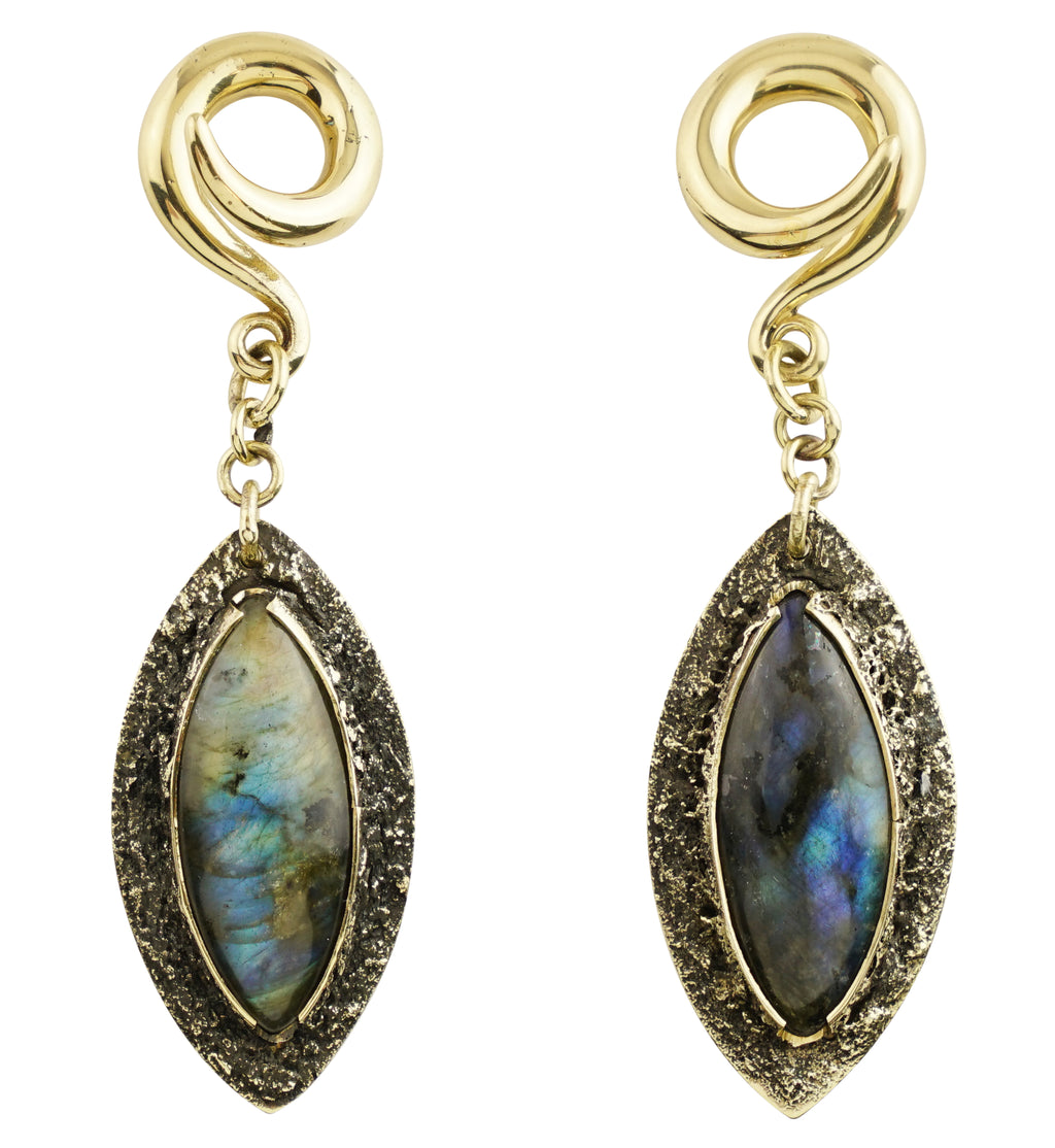 Textured Labradorite Stone Brass Hangers/Ear Weights Version 14