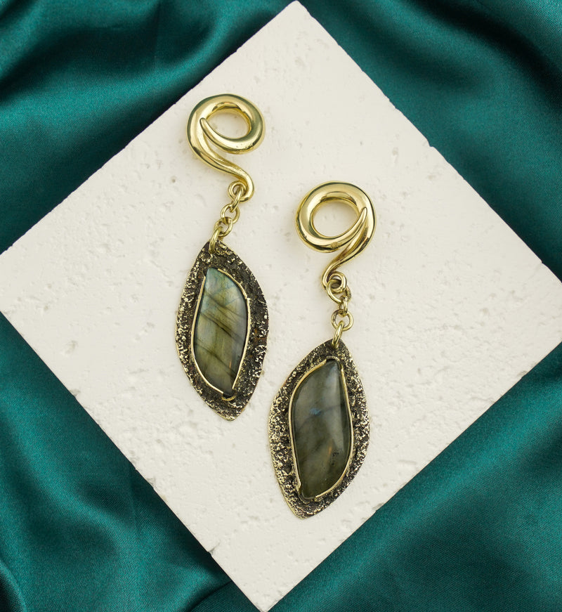 Textured Labradorite Stone Brass Hangers/Ear Weights Version 19